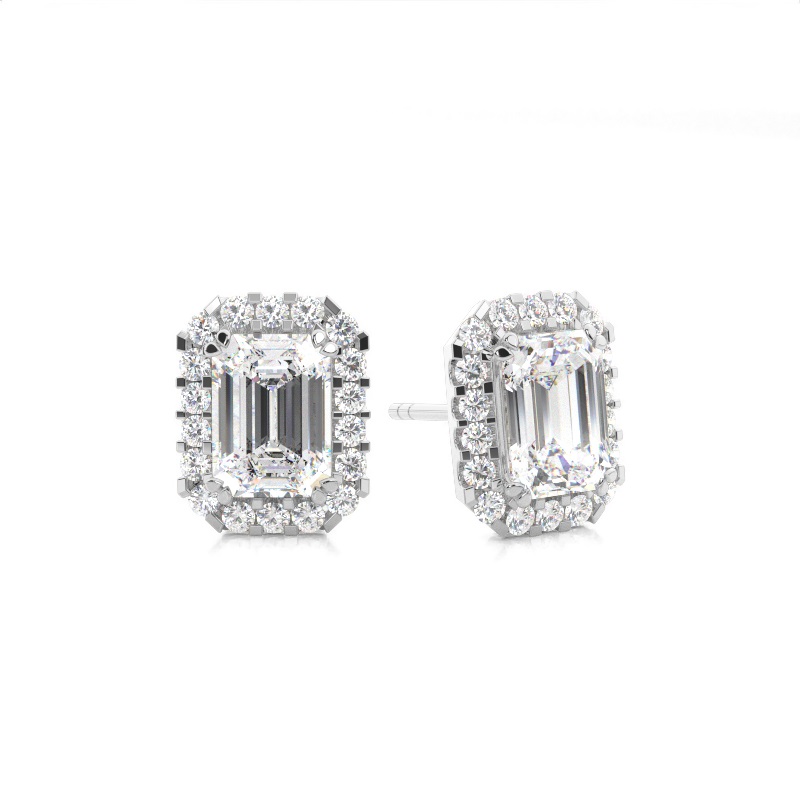 A burst of heavenly light shining from your ear, the halo stud earring is an impressive way to catch attention with just the right balance of sparkle and elegance. Catching the light and radiating it in every direction with hints of rainbow flashes, diamond studs echo a far off calling from the heavens themselves. Shown in 1.4ct total (0.7ct each) with each centre stone 0.5ct.