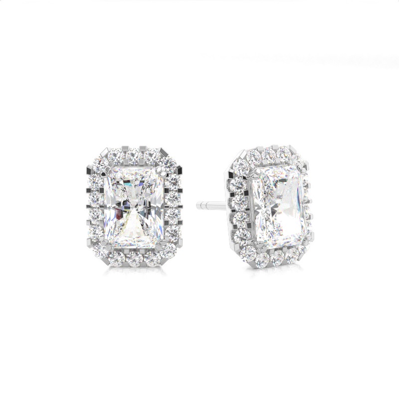 Radiant Cut Halo Diamond Stud Earrings
